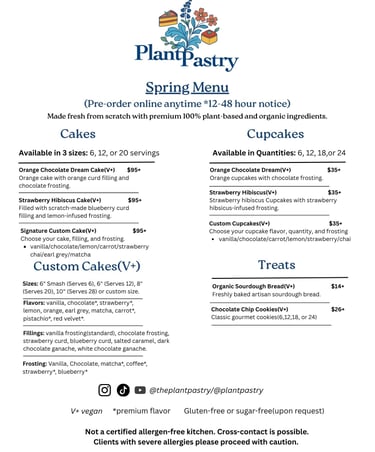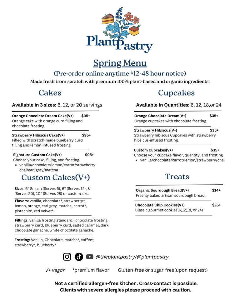 Bring your Custom Vegan Cake or Cupcake idea to life, fill out the form here to receive a custom quote(within 24-48 hours). If you have any questions, please contact us at contact@plantpastry.com or message us at 904-341-3918.
